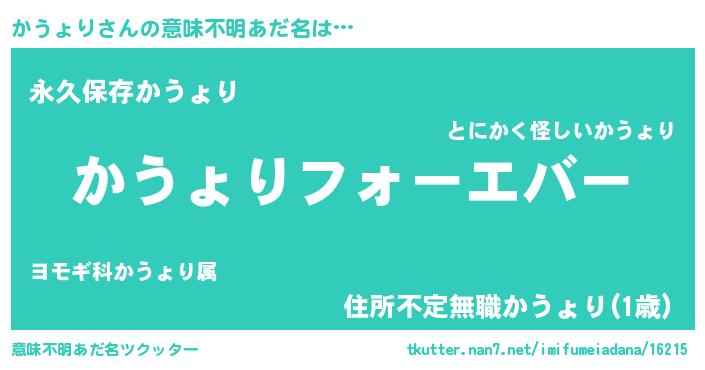| 欧米人風あだ名 | 『かうょり・ステッグマイヤー』 |