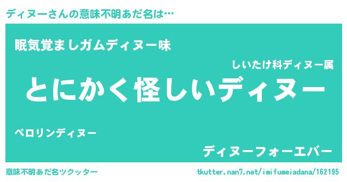 | 男性向けラノベタイトル風あだ名 | 『ダンジョンにディヌーを求めるのは間違っているだろうか』 |