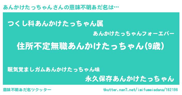 | 欧米人風あだ名 | 『ダレノガレあんかけたっちゃん』 |