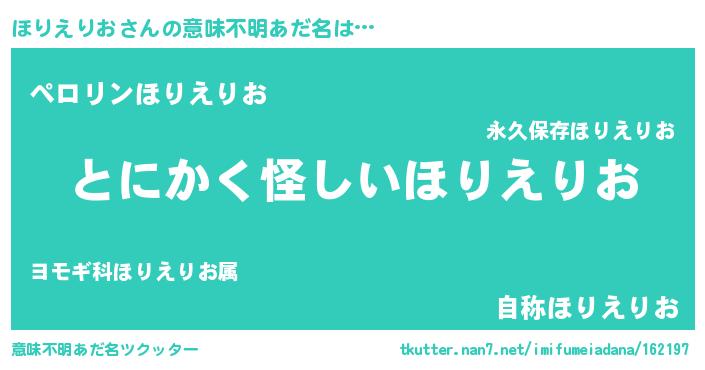 | 男性向けラノベタイトル風あだ名 | 『ほりえりおの嫁は女の子じゃないと思った?』 |