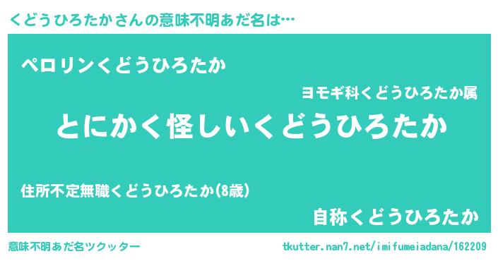 | 男性向けラノベタイトル風あだ名 | 『ダンジョンにくどうひろたかを求めるのは間違っているだろうか』 |