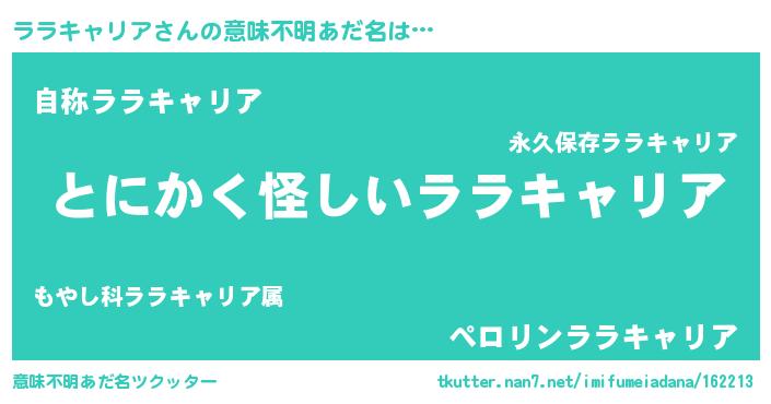 | 胡散臭い通販商品みたいなあだ名 | 『伝統あるサプリメント…その名も「ララキャリア」』 |