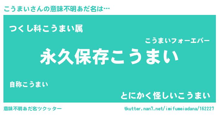 | 胡散臭い通販商品みたいなあだ名 | 『前代未聞の健康食品…その名も「こうまい」』 |