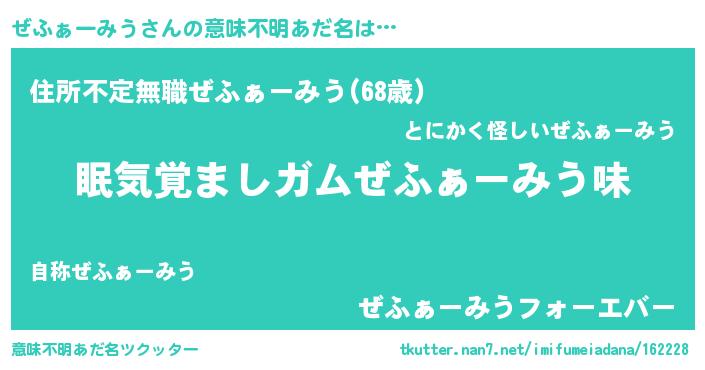 | 伝説のあだ名 | 『救世主となる占い師ぜふぁーみう』 |