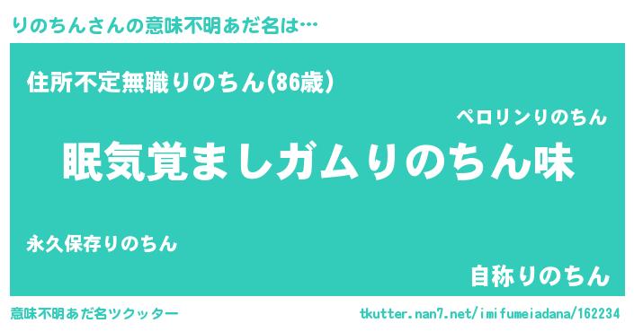 | 女子向けラノベタイトル風あだ名 | 『死神りのちんの再婚』『闇のりのちん』 |