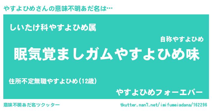 | 男性向けラノベタイトル風あだ名 | 『ノーゲーム・ノーヤスヨヒメ』 |