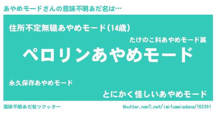 | 胡散臭い通販商品みたいなあだ名 | 『億万長者になれるブレスレット…その名も「あやめモード」』 |