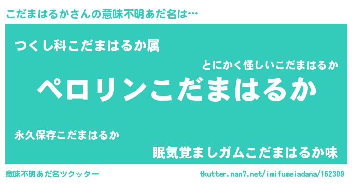 | 胡散臭い通販商品みたいなあだ名 | 『必ず成功する霊験あらたかなお札…その名も「こだまはるか」』 |