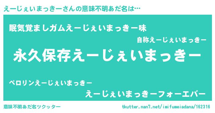 | ヘコむあだ名 | 『えーじぇいまっきー(震え声)』『なまこ酢』 |