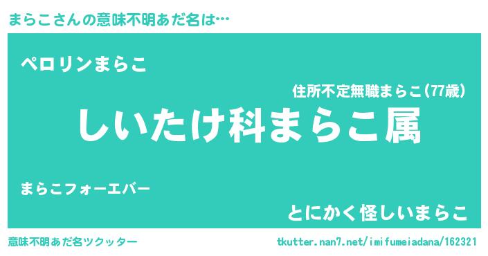 | 男性向けラノベタイトル風あだ名 | 『はたらくまらこさま!』『まらこの憂鬱』 |