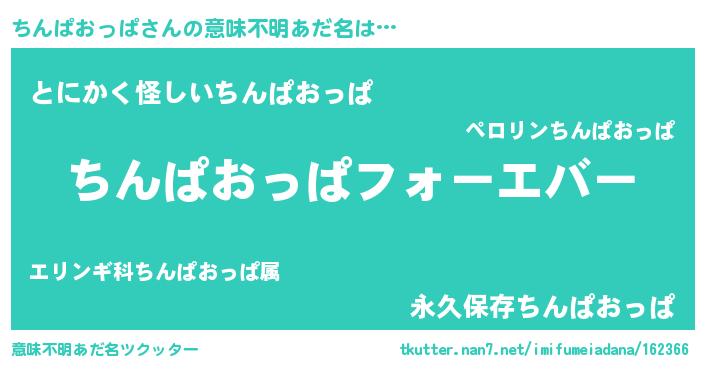 | ヒーロー風カッコイイあだ名 | 『ウルトラちんぱおっぱマン』 |