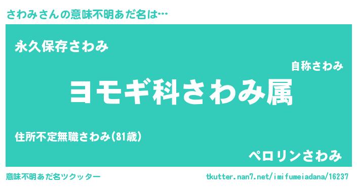 | 男性向けラノベタイトル風あだ名 | 『さわみ~年齢イコール彼女いない歴の魔法使い~』 |