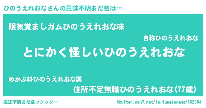| 胡散臭い通販商品みたいなあだ名 | 『信頼と実績のネックレス…その名も「ひのうえれおな」』 |