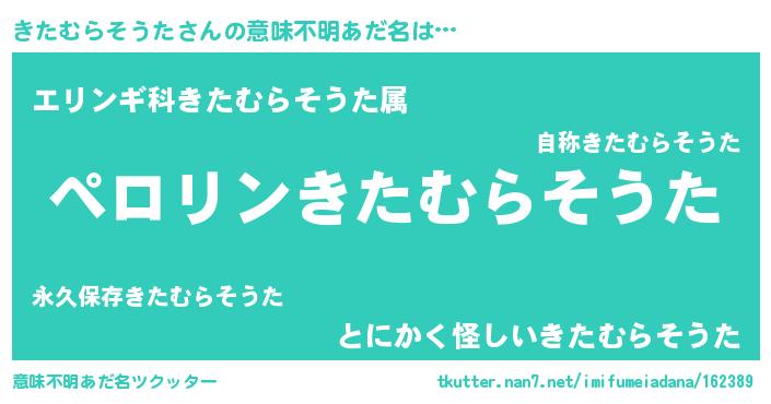 | ヒーロー風カッコイイあだ名 | 『スーパーキタムラソウタ』 |