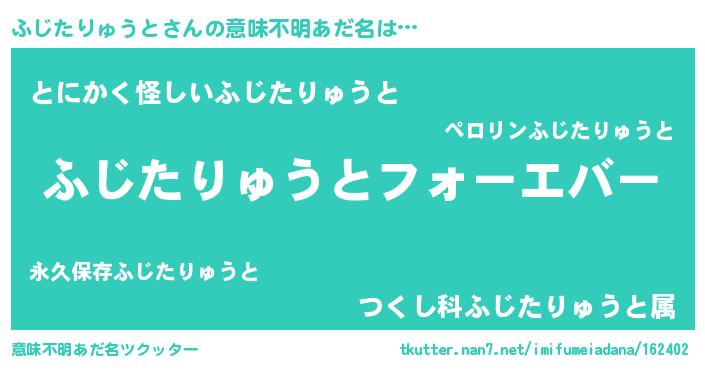 | 男性向けラノベタイトル風あだ名 | 『やはりふじたりゅうとの青春ラブコメはまちがっている 』 |