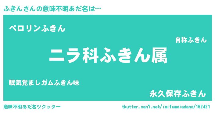 | ヘコむあだ名 | 『ふきにー』『ふきん(遠い目)』 |