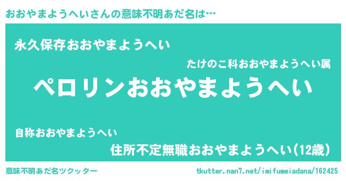 | 胡散臭い通販商品みたいなあだ名 | 『億万長者になれるブレスレット…その名も「おおやまようへい」』 |