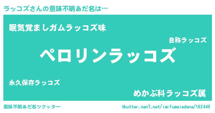 | ヘコむあだ名 | 『ラッふぇ~』『ラッコズ(笑)』 |