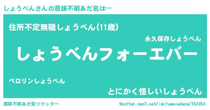 | 女子向けラノベタイトル風あだ名 | 『しょうべんの雑貨屋さん』 |