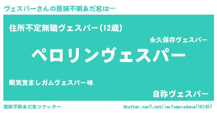 | 男性向けラノベタイトル風あだ名 | 『ヴェスパーアートオンライン』 |