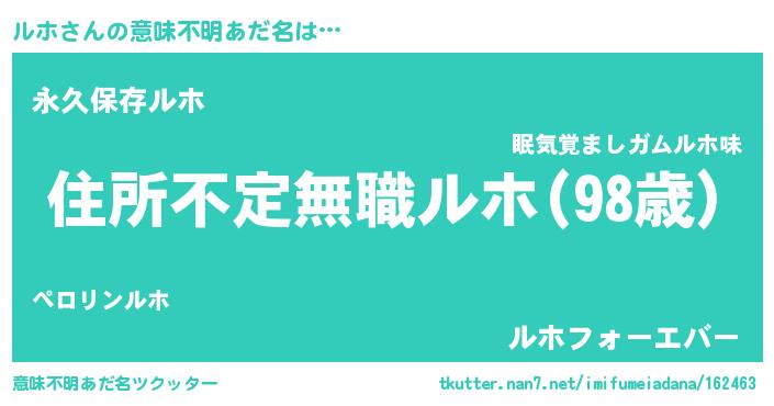 | ポケモン風あだ名 | 『ルホゴンZ』『ルーホイ』『ゼニルホ』 |