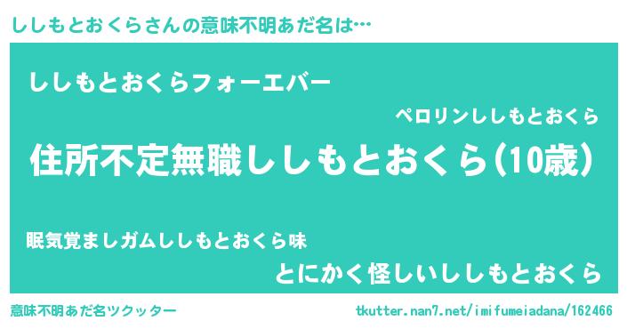 | ヘコむあだ名 | 『なまこ酢』『ししを』『ししもー』 |
