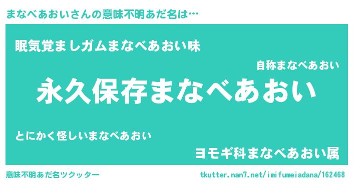 | 胡散臭い通販商品みたいなあだ名 | 『絶対に幸福をもたらす健康食品…その名も「まなべあおい」』 |