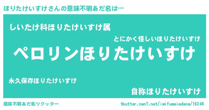 | 男性向けラノベタイトル風あだ名 | 『ほりたけいすけの憂鬱』 |