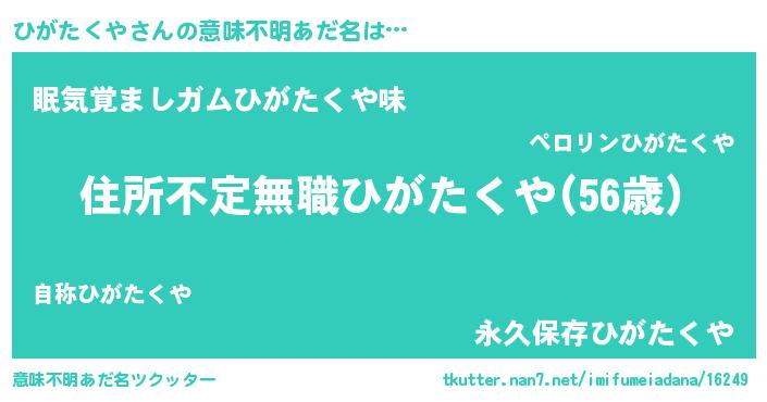 | ヘコむあだ名 | 『ひがたくや(爆)』『ひがにー』 |