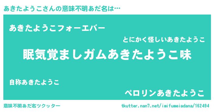 | ヒーロー風カッコイイあだ名 | 『愛の使者あきたようこ』『炎刃騎士アキ』 |