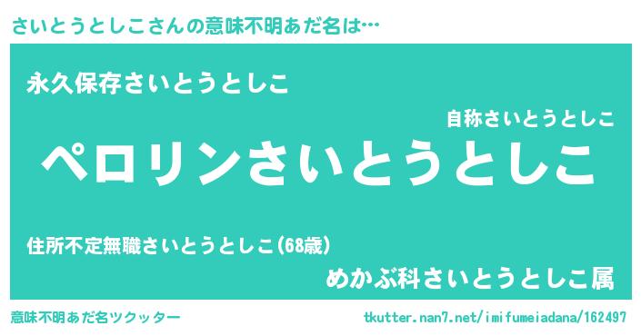 | ヘコむあだ名 | 『さいにゅー』『さいとうとしこ(笑)』 |