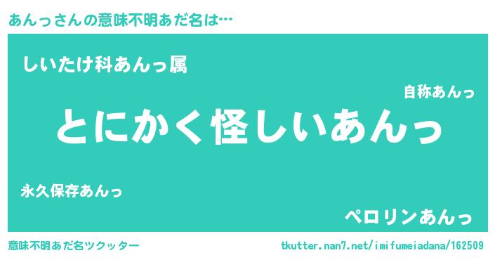 | 女子向けラノベタイトル風あだ名 | 『あんっの卵を拾いまして』『闇のあんっ』 |