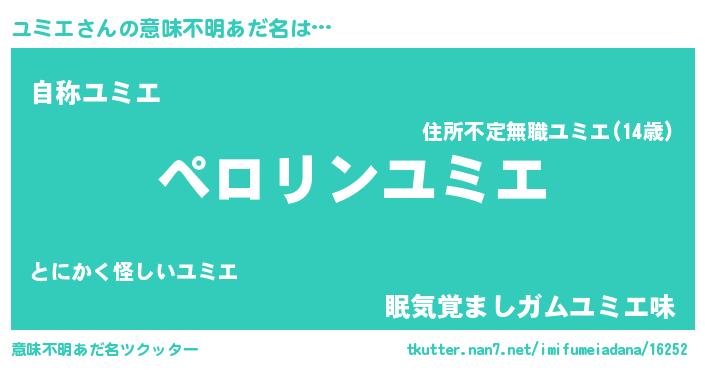 | 胡散臭い通販商品みたいなあだ名 | 『モテモテ間違いなし霊験あらたかなお札…その名も「ユミエ」』 |