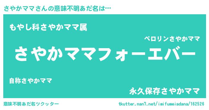 | ファンタジー風あだ名 | 『エターナルサヤカママー』『サヤフェル』 |