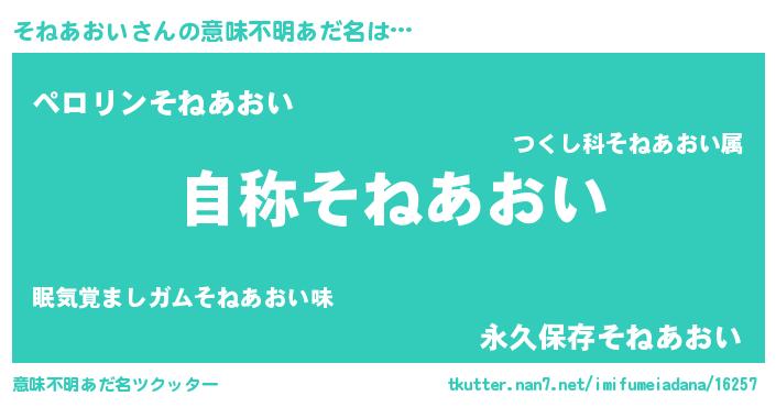 | 男性向けラノベタイトル風あだ名 | 『そねあおいに滅ぼされるだけの簡単なお仕事です』 |