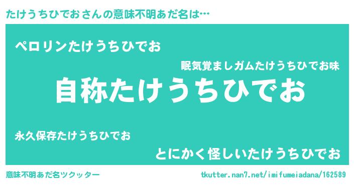 | 女子向けラノベタイトル風あだ名 | 『たけうちひでおなんてお断りですっ。』 |