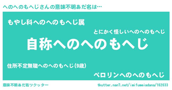 | 男性向けラノベタイトル風あだ名 | 『Re:へのへのもへじから始める異世界生活』 |