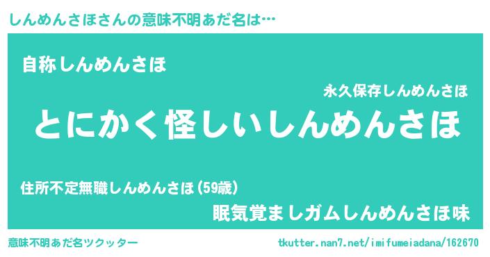 | ポケモン風あだ名 | 『ヒシンメンサホ』『メロシッン』 |