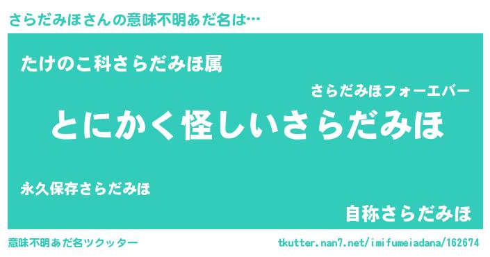 | 欧米人風あだ名 | 『ウサインさらだみほ』 |