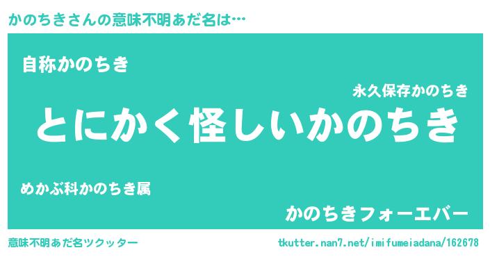 | 男性向けラノベタイトル風あだ名 | 『かのちきの嫁は女の子じゃないと思った?』 |