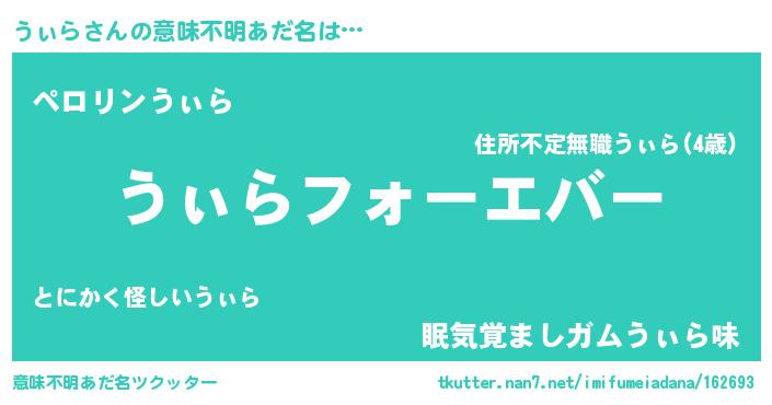 | ヒーロー風カッコイイあだ名 | 『ウルトラうぃらマン』『スーパーウィラ』 |