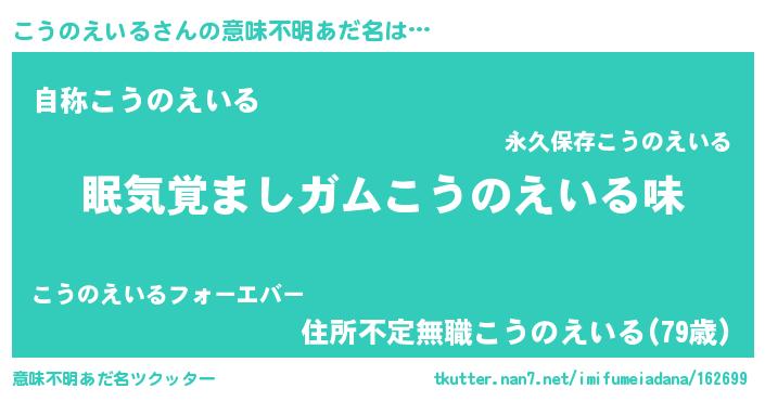 | ヘコむあだ名 | 『こうのえいる(笑)』『豆乳』 |
