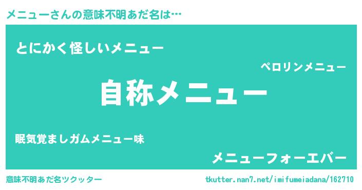 | 恥ずかしいあだ名 | 『メニューデラックス』『メニリンリン』 |