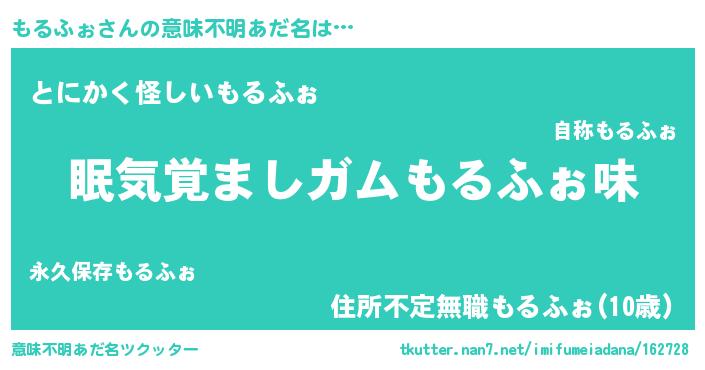 | 男性向けラノベタイトル風あだ名 | 『おまえをオタクにしてやるから、俺をもるふぉにしてくれ! 』 |