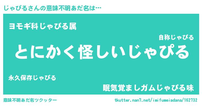 | 男性向けラノベタイトル風あだ名 | 『じゃぴるの嫁は女の子じゃないと思った?』 |