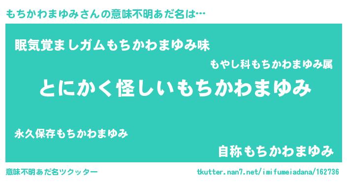 | 胡散臭い通販商品みたいなあだ名 | 『信頼と実績のペンダント…その名も「もちかわまゆみ」』 |