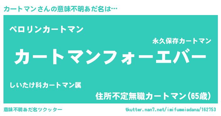 | 肩書あだ名 | 『カートマン総理大臣』『カートマン社長』 |