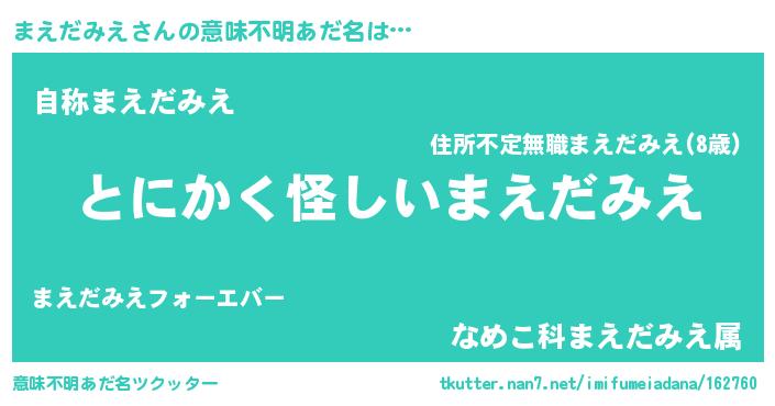 | 男性向けラノベタイトル風あだ名 | 『まえだみえに滅ぼされるだけの簡単なお仕事です』 |