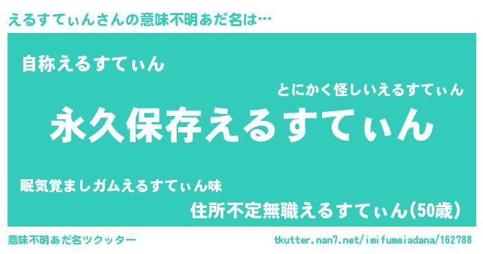 | 胡散臭い通販商品みたいなあだ名 | 『来世でも幸せになれる水素水…その名も「えるすてぃん」』 |