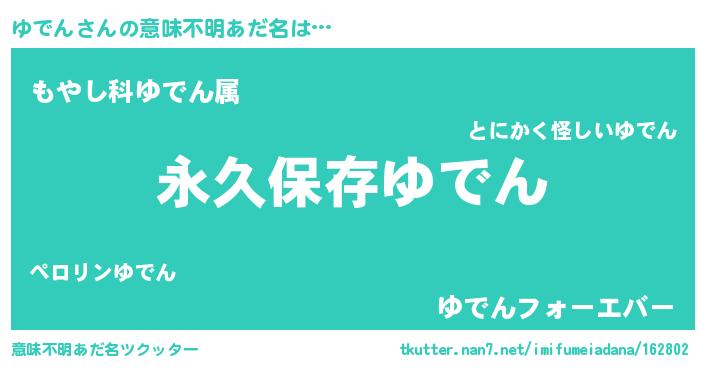 | ヘコむあだ名 | 『ゆでん(小並感)』『なまこ酢』 |